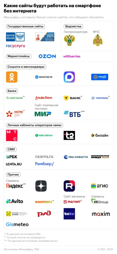 Таким образом, пользователи сохранят доступ к ключевым государственным и финансовым сервисам, а также к части социальных сетей, онлайн-магазинов и СМИ. Ведомство отмечает, что список может расширяться.