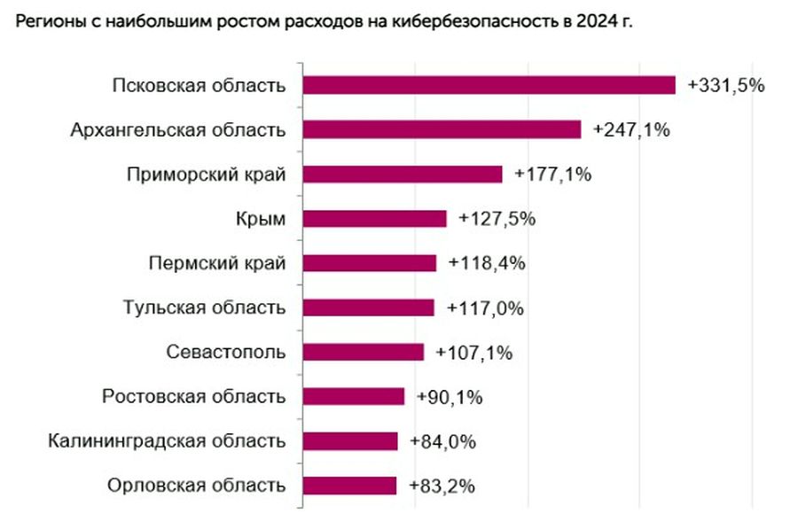 В целом затраты на кибербезопасность в 2024 году траты выросли в 60% регионов.