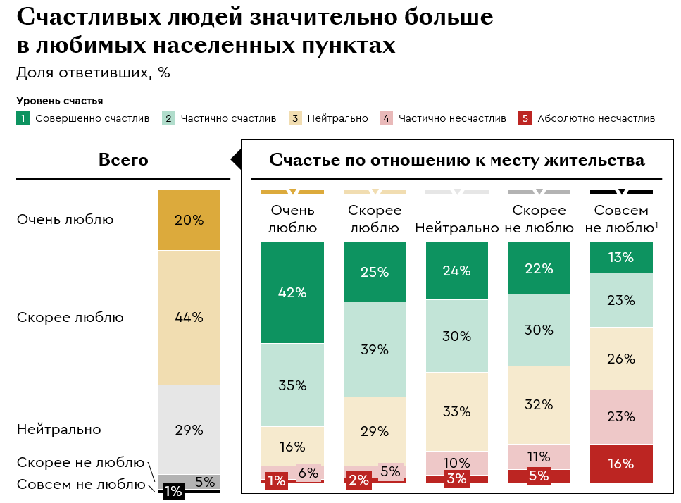 Исследование компании РОМИР показывает — среди тех, кто любят место своего проживания, счастливых людей больше в разы