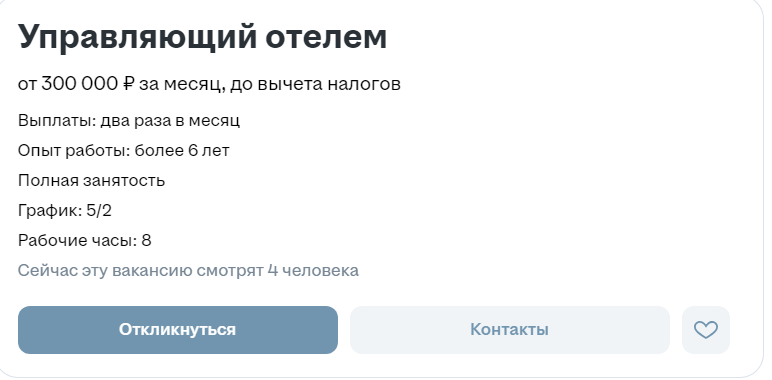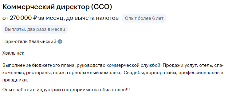 Эта новость из объявления и как не порадоваться за будущего управляющего.  Зарплата более чем достойная для Хвалынска и  для нашего региона. Кстати, коммерческому директору в том же отеле предлагают зарплату  в 270 тысяч рублей.  Зарплаты космические для Хвалынска. Возможно, наш регион доживет до того времени, когда, скажем, сварщик на заводе станет получать 300 тысяч рублей, как управляющий в отеле.