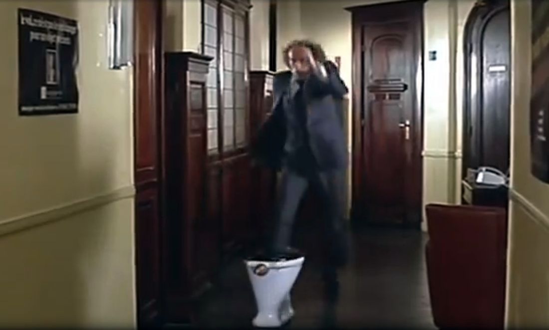 Но герой Ришара понятно по какой причине попал в унитаз, а тут мы столкнулись с воистину престранным случаем. О-ля-ля!..